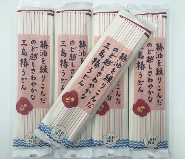三島村硫黄島産の椿から抽出した椿油を練りこんで作ったのど越しさわやかなうどんです。