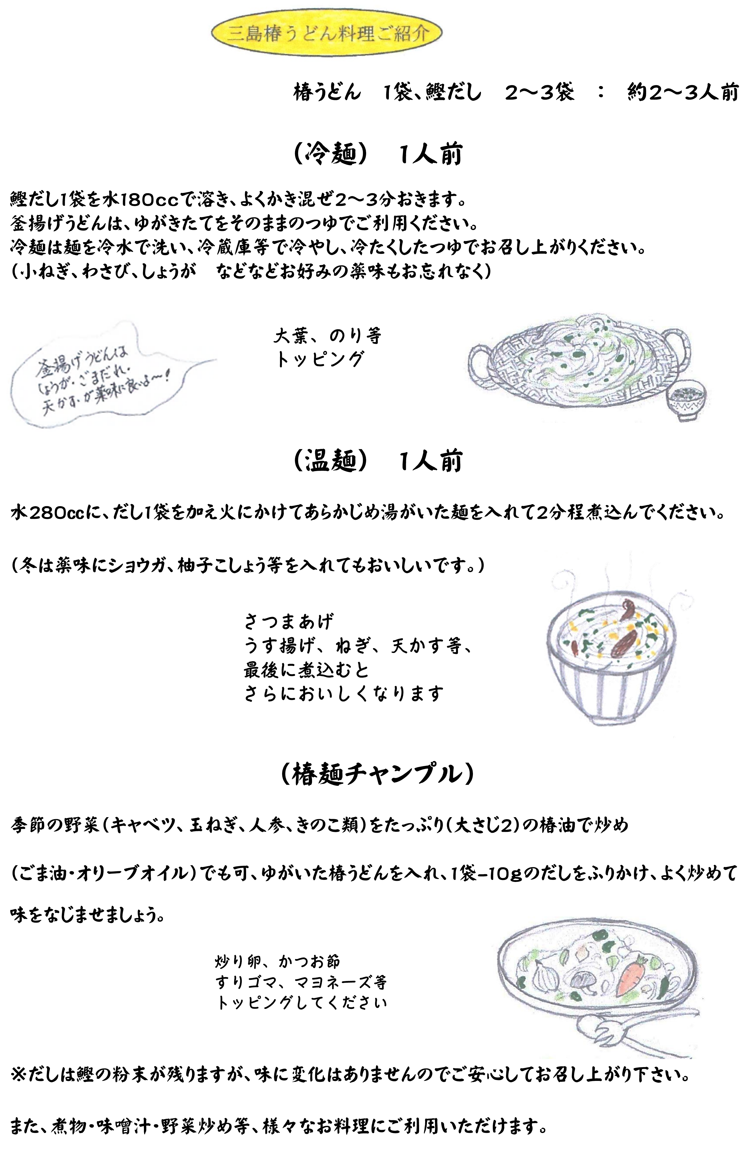 うどん1袋につき、だしを2つ付けて発送したします。